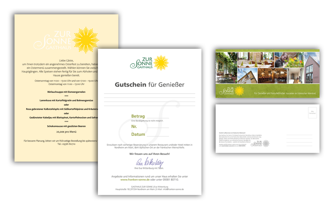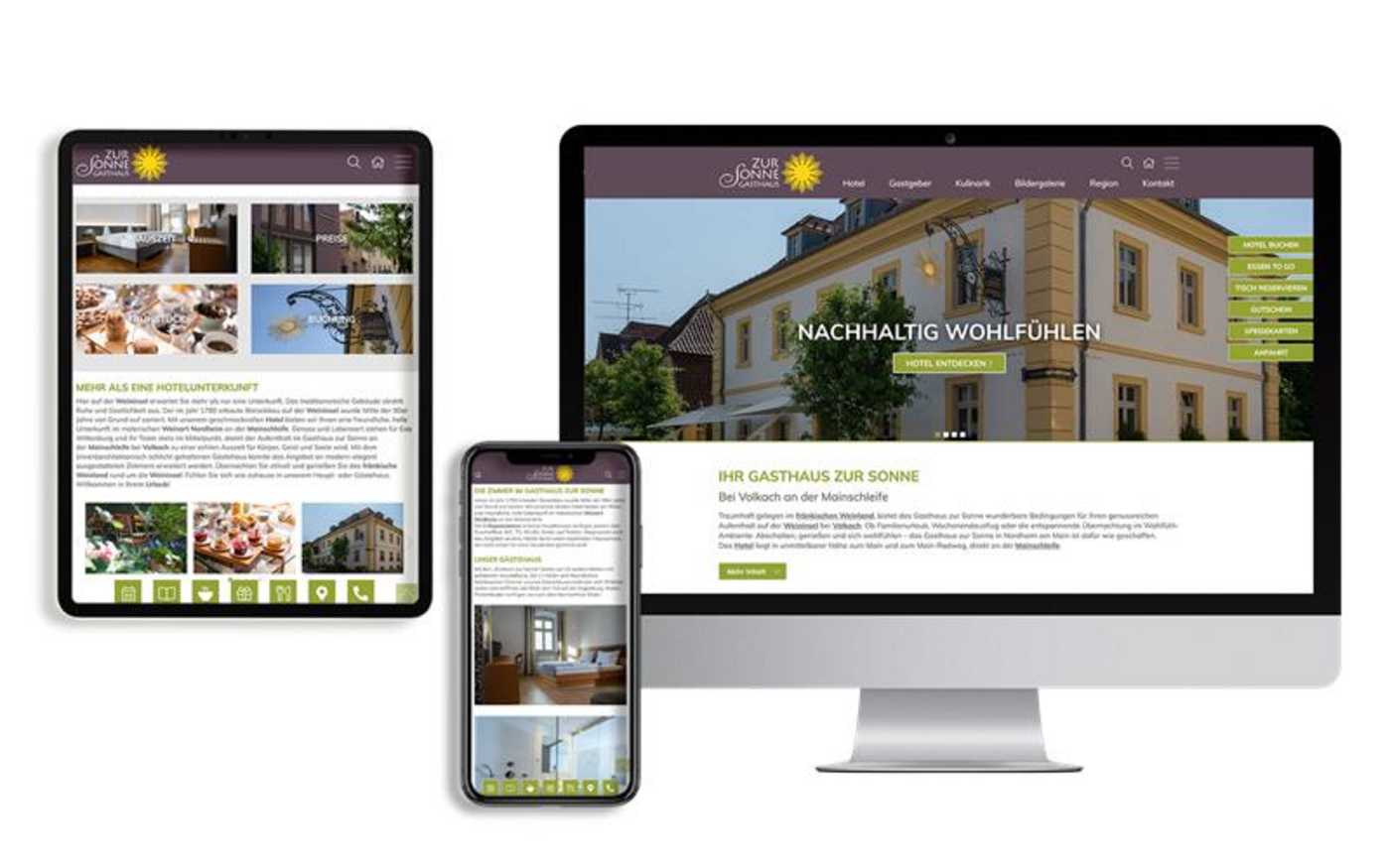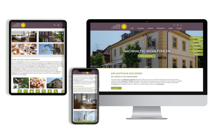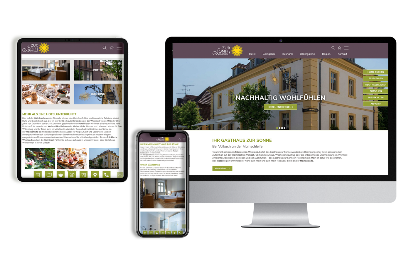 Für das traditionsreiche Gasthaus zur Sonne im Weinort Nordheim, entwickelten wir einen modernden Gesamtauftritt, der die regionale Verbundenheit und die herzliche Atmosphäre des Hauses authentisch widerspiegelt.