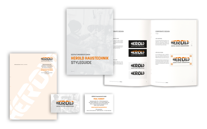 Ergänzend dazu entstand eine umfassende Auswahl an Printprodukten, die den Auftritt konsequent fortführen, vom Arbeitsbericht über Formulare bis hin zu Visitenkarten. So zeigt sich die Herold Haustechnik GmbH in allen Kommunikationsmitteln einheitlich, professionell und zukunftsorientiert.