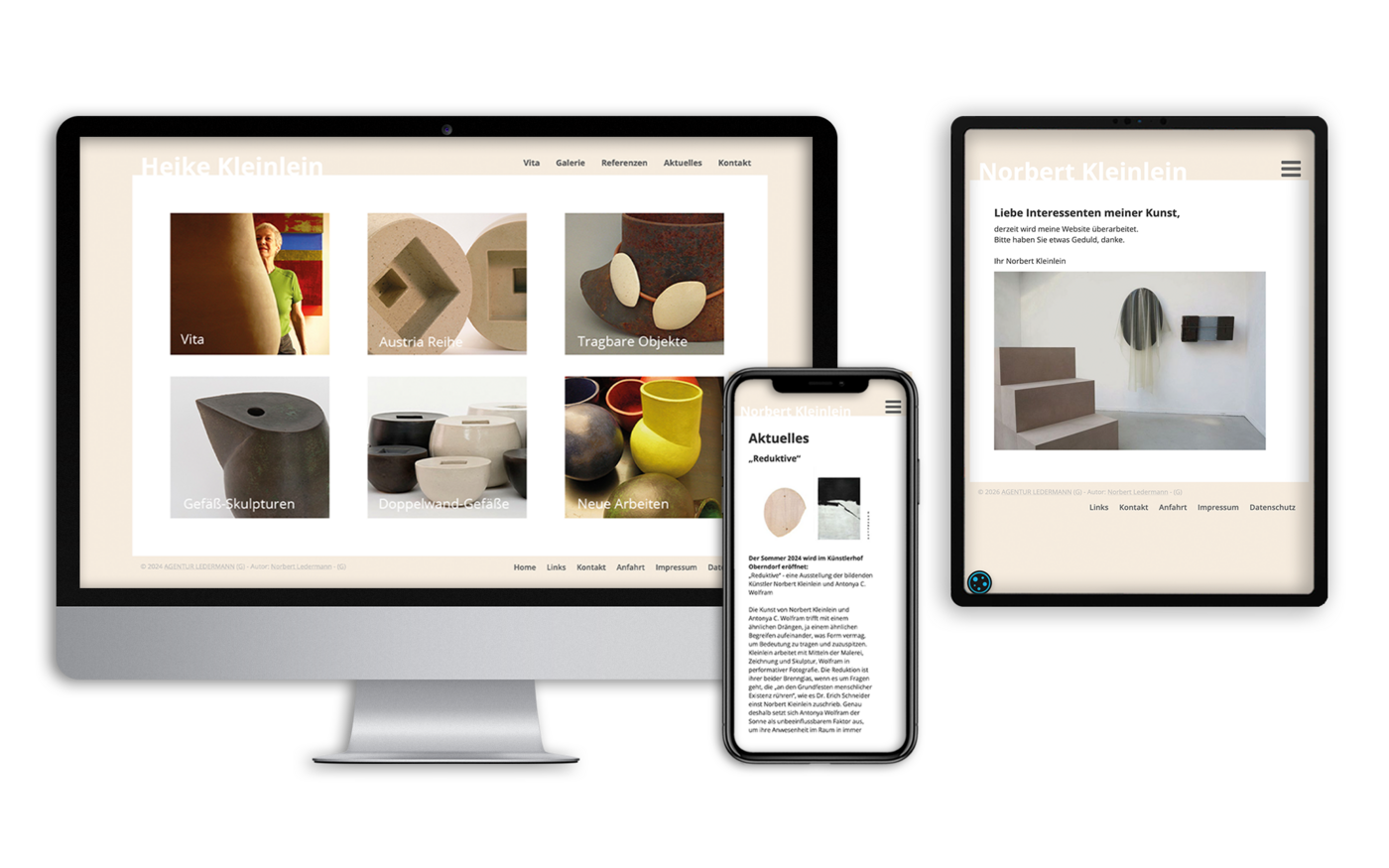 Für das Künstlerpaar Norbert & Heike Kleinlein aus Oberndorf haben wir ein maßgeschneidertes TYPO3-System entwickelt, das zwei Websites mit unterschiedlichen Templates verwaltet. Diese Lösung ermöglicht es dem Künstlerpaar, ihre einzigartigen Werke und ihr Atelier effizient online zu präsentieren und individuell anzupassen.