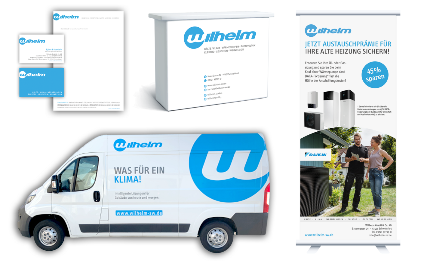 Für die Wilhelm GmbH & Co. KG, ein erfahrenes Unternehmen im Bereich Kälte und Klimatechnik, entwickelten wir ein durchgängiges visuelles Konzept, das die technische Präzision und Zuverlässigkeit der Marke auch gestalterisch widerspiegelt.
