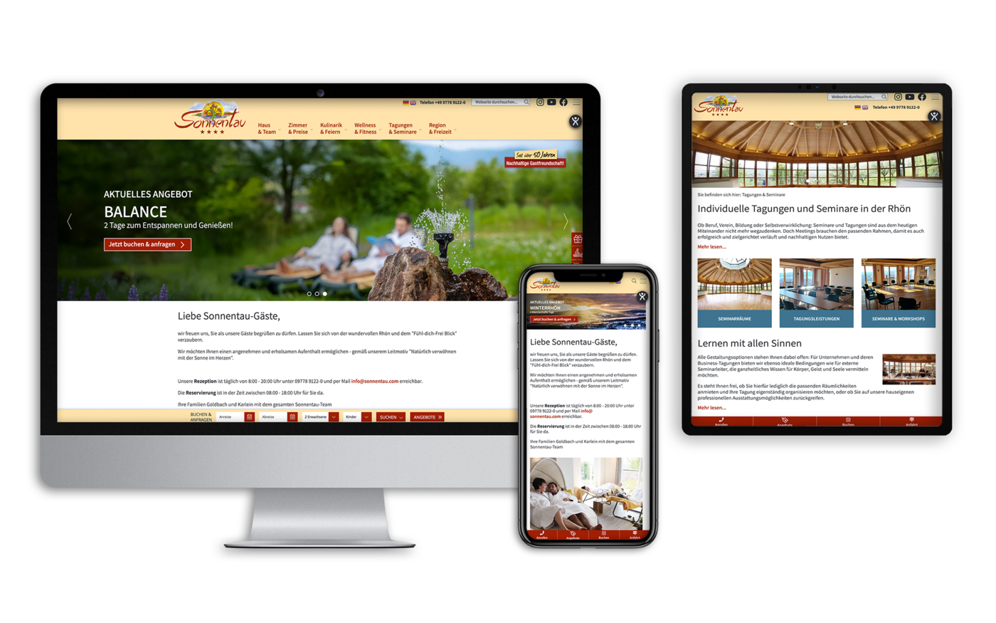 Für das Hotel Sonnentau haben wir ein umfassendes Marketing- und Designkonzept umgesetzt. Hierzu zählen die Entwicklung einer TYPO3-basierten Website sowie gezielte SEO- und SEA-Maßnahmen (Google Ads-Kampagnen) zur Steigerung der Online-Sichtbarkeit.