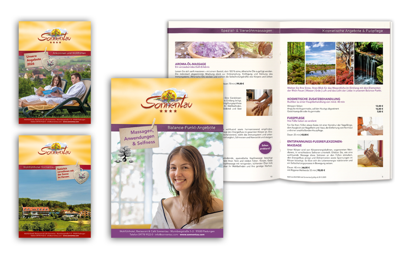 Darüber hinaus haben wir eine Imagebroschüre, diverse Angebotsbroschüren sowie einen Kalender gestaltet und eine maßgeschneiderte Geschäftsausstattung (z.B. Visitenkarten, Aufkleber) realisiert.